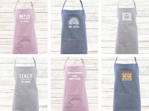 Designed for practicality and style, our Everyday Half Apron is a must-have for teachers. Featuring three spacious pockets, this apron is perfect for keeping your essentials within reach, making it easier to manage your classroom activities.