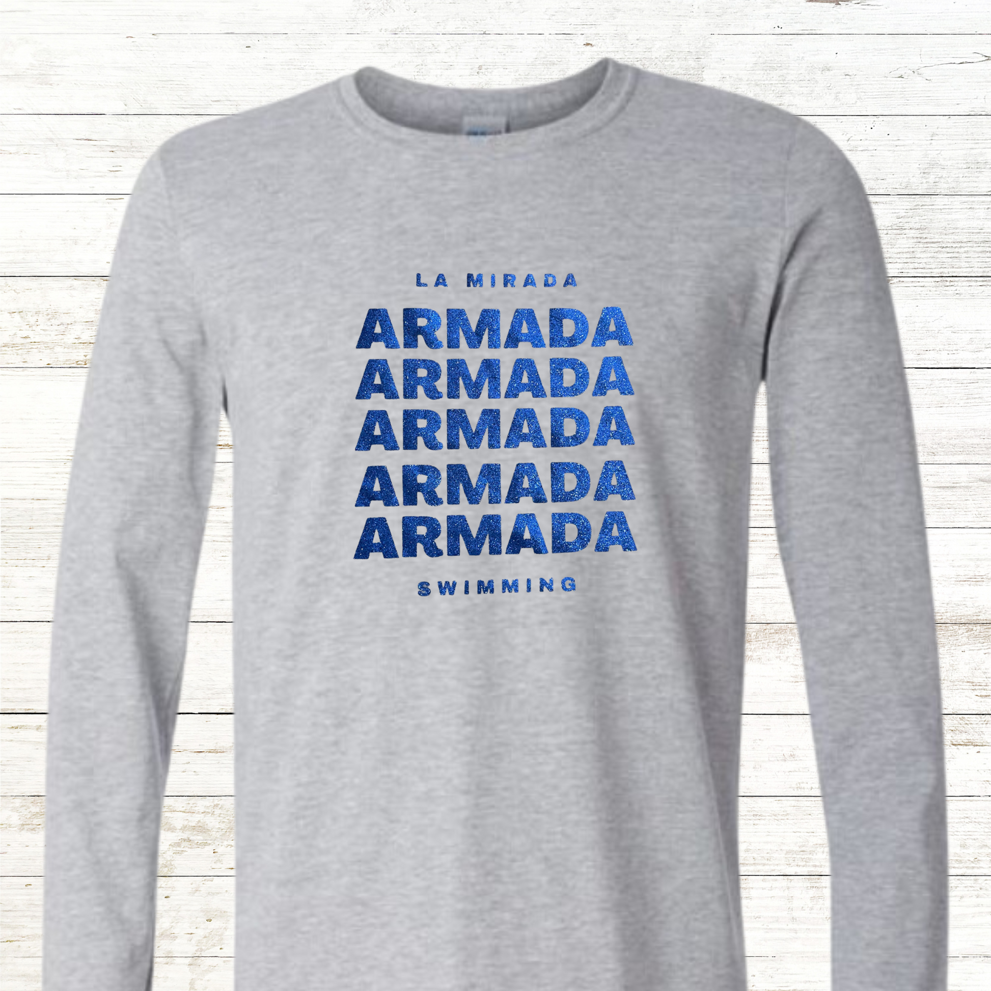 Glittering Design: The "Armada Swimming" text shines brilliantly in glitter, adding a touch of glamour and excitement to your ensemble while proudly showcasing your allegiance to the Armada Swimming team.