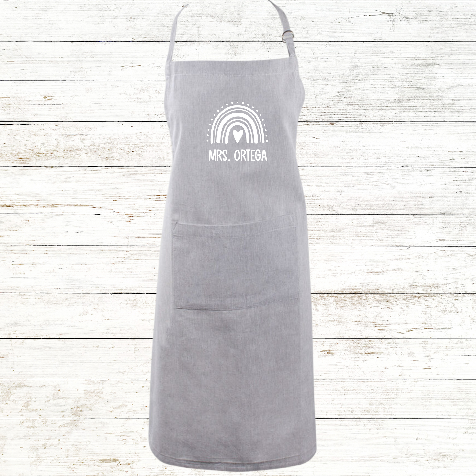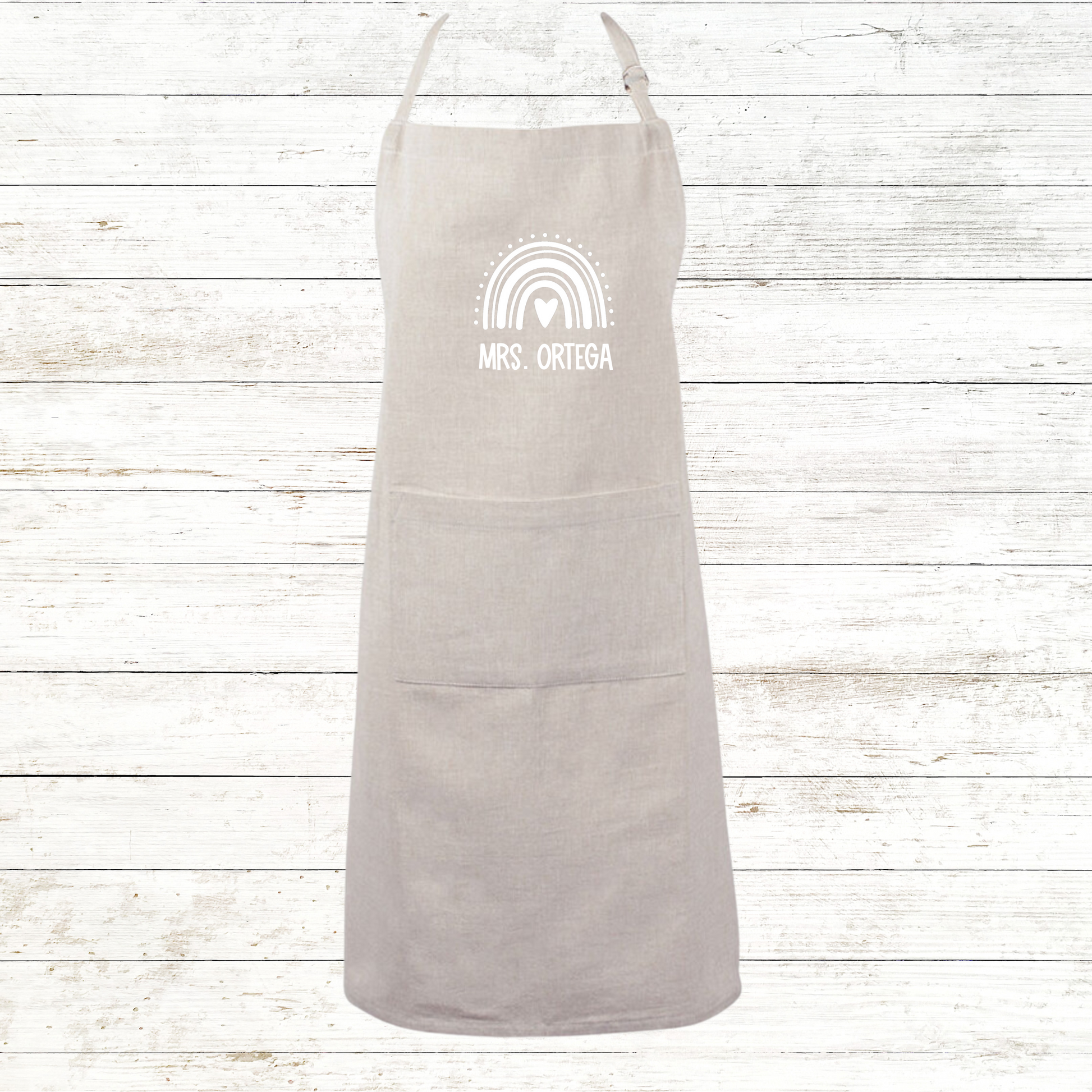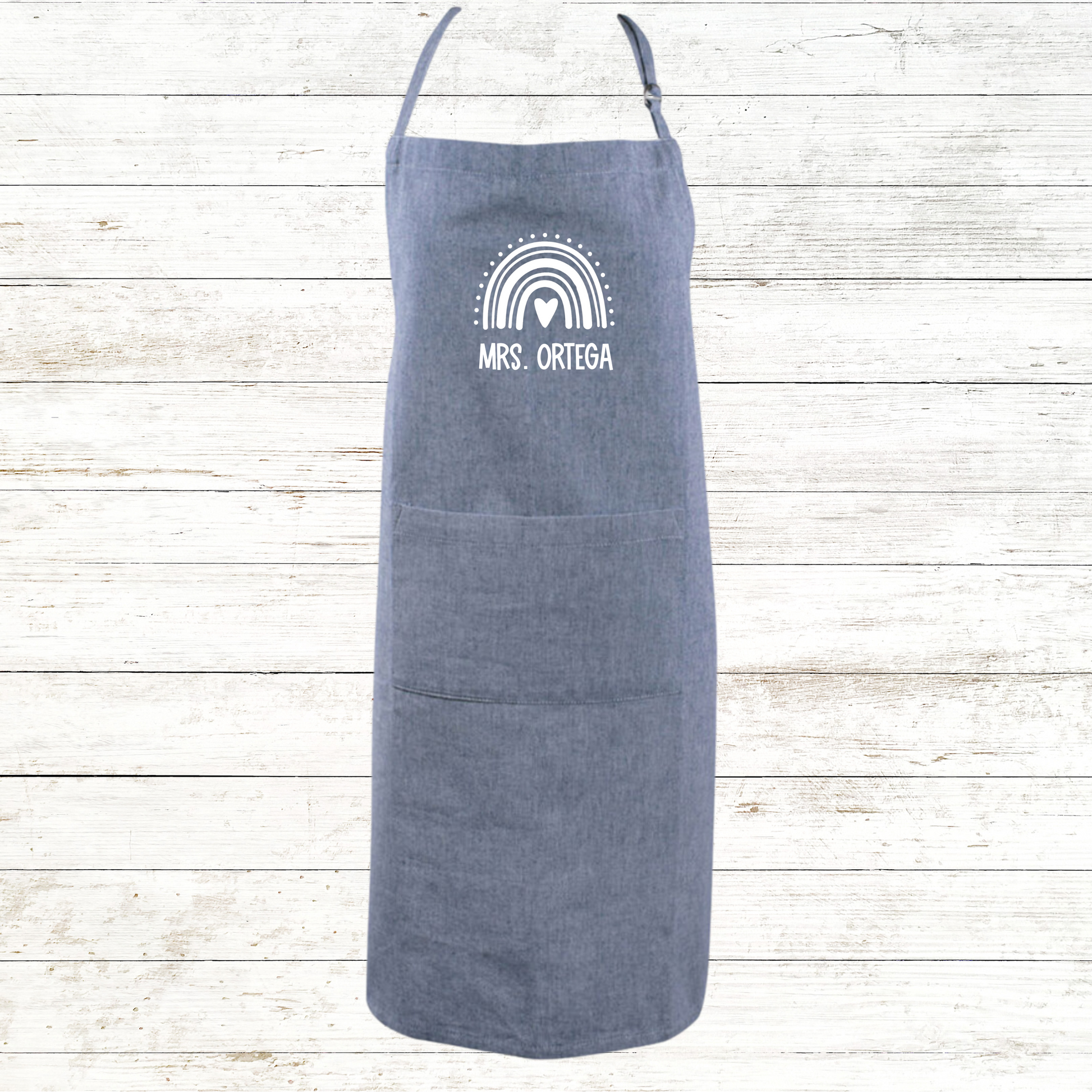 Boho Rainbow Teacher Apron Chambray Colors with Front Pocket - Personalized