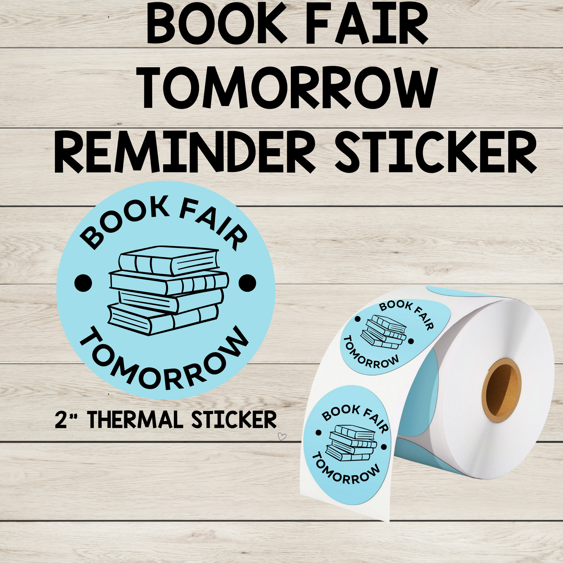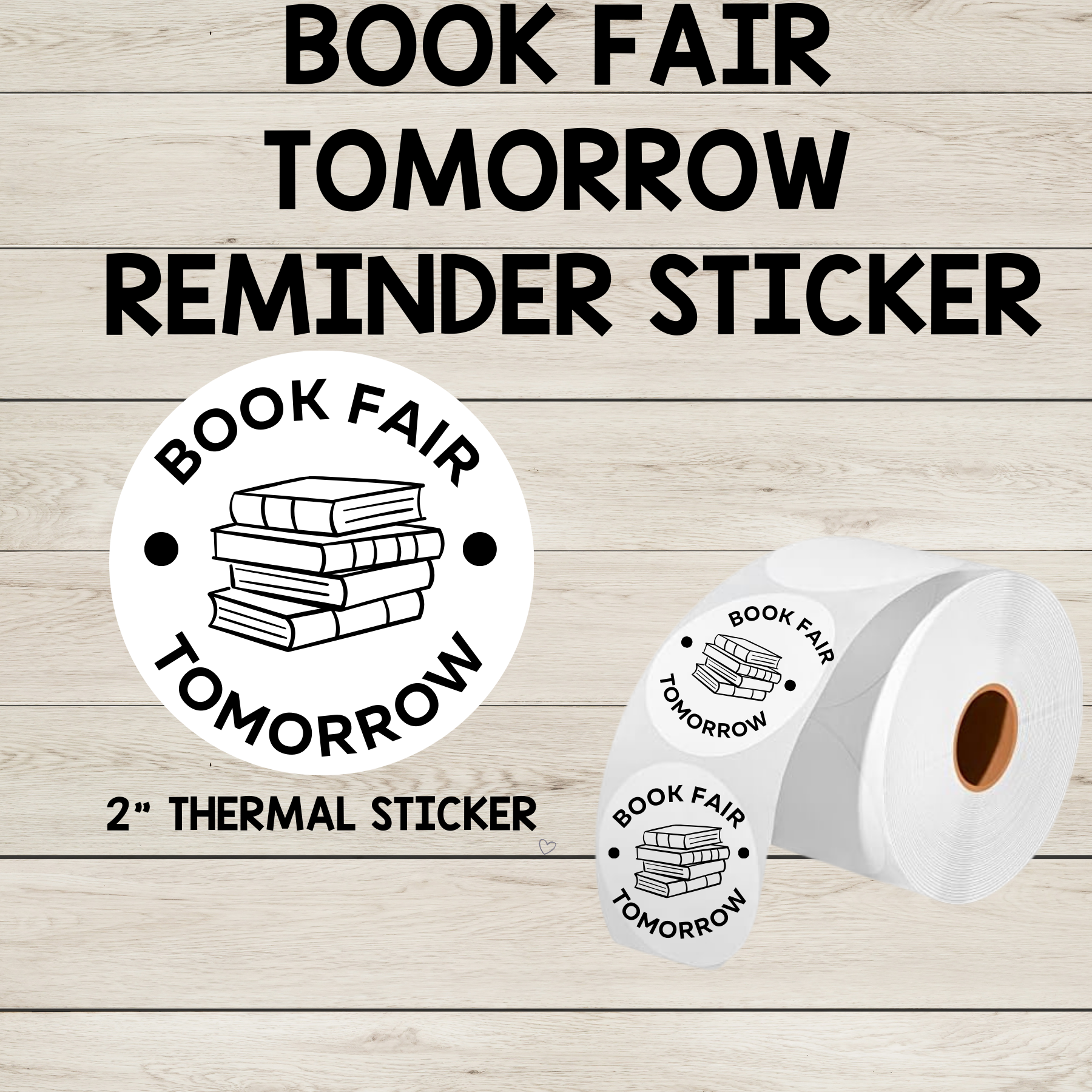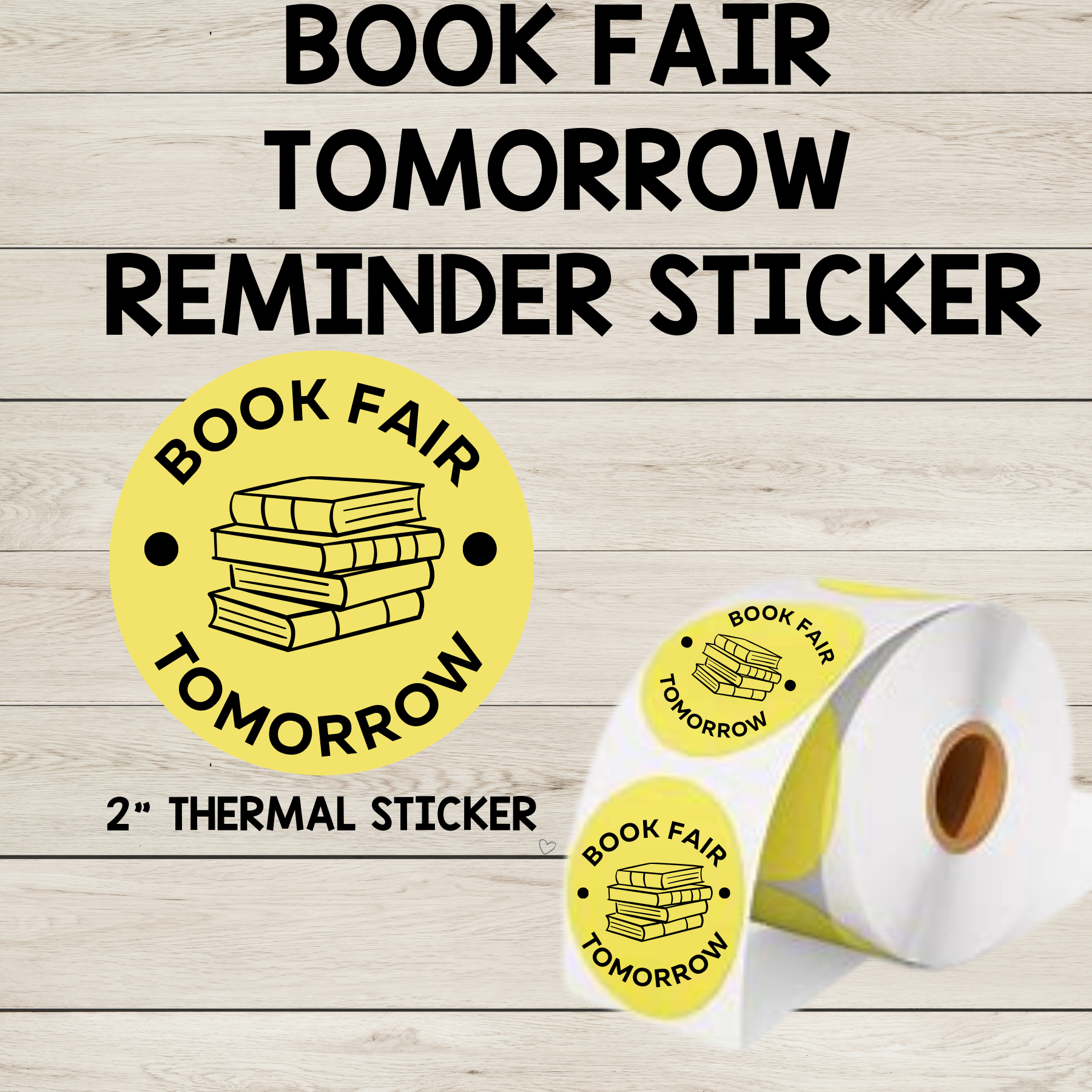 "Book Fair Tomorrow" 2" Thermal Circle Sticker
