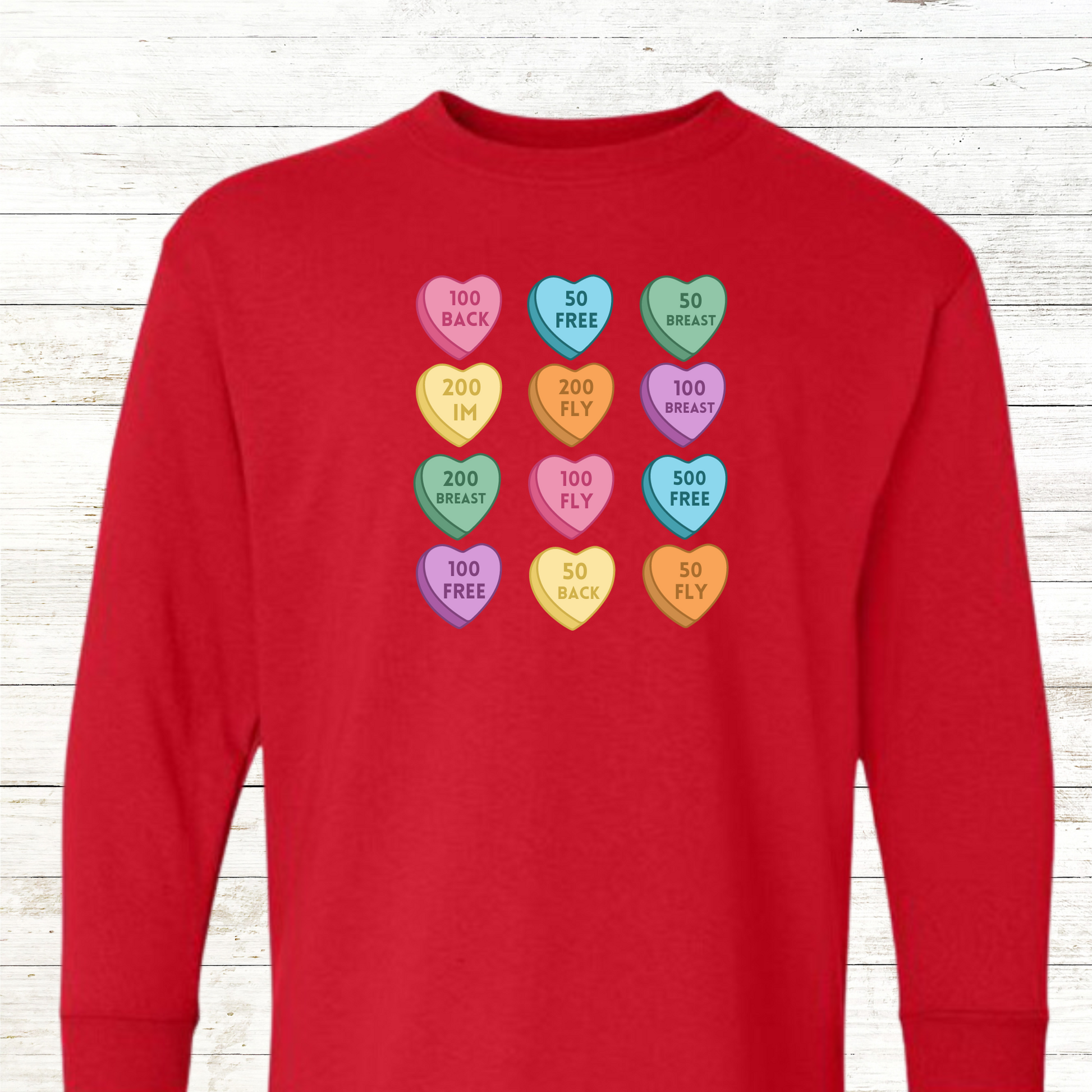Dive into the sweetness of Valentine's Day with our exclusive Conversation Heart Valentine Design, specially crafted for swim enthusiasts! šāāļøš This delightful design showcases your love for swimming events like the 100 Fly and 200 IM, blending the joy of the season with the excitement of the pool.
