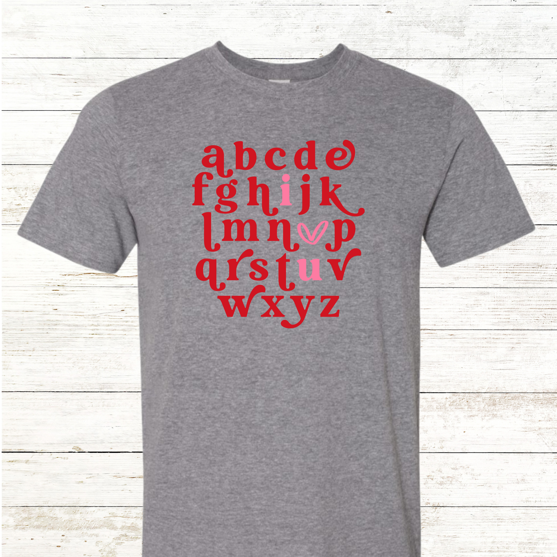 Valentine Alphabet I Heart You - Adult Crewneck Tee