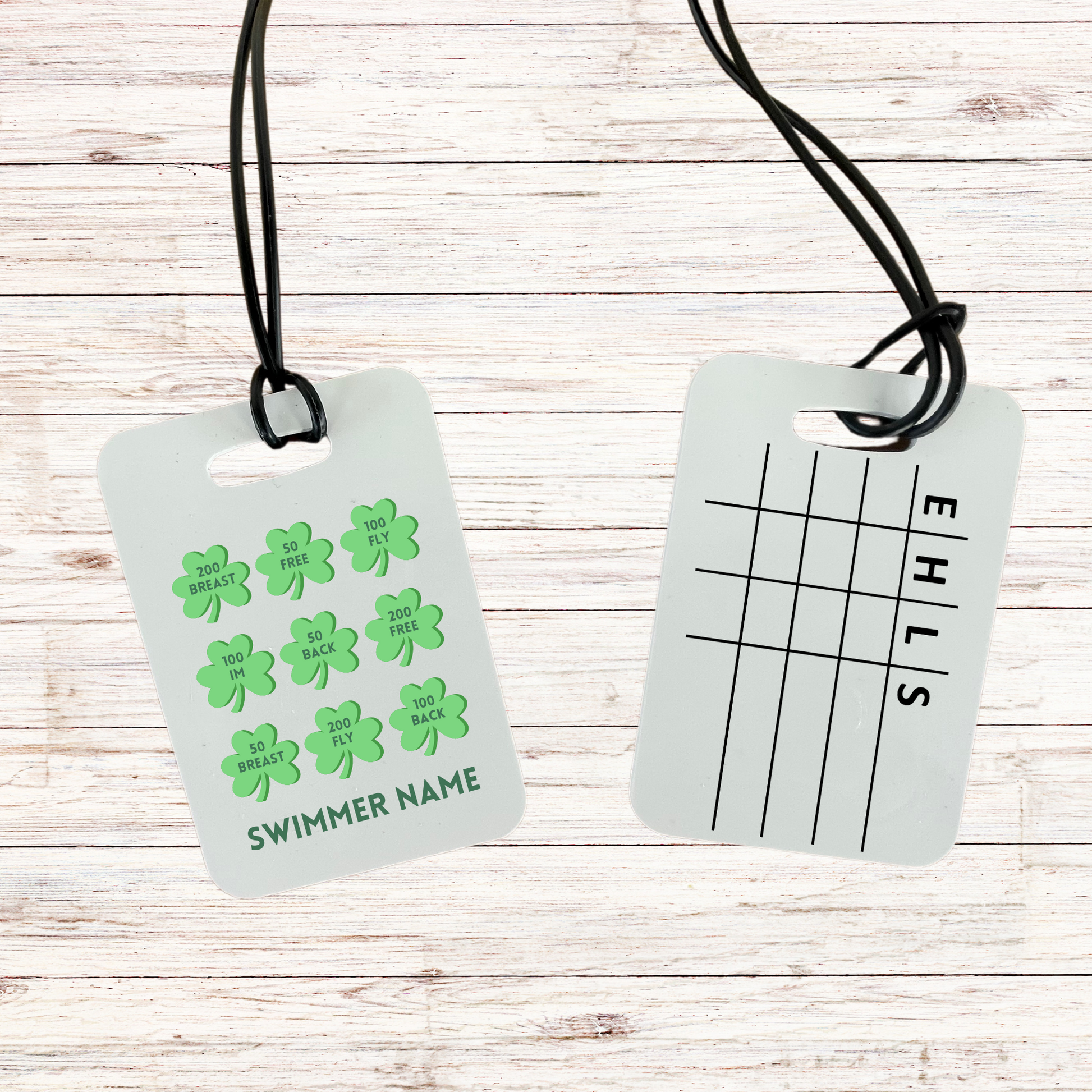 Reusable swim meet heat tag: St. Patrick's Day Shamrocks
