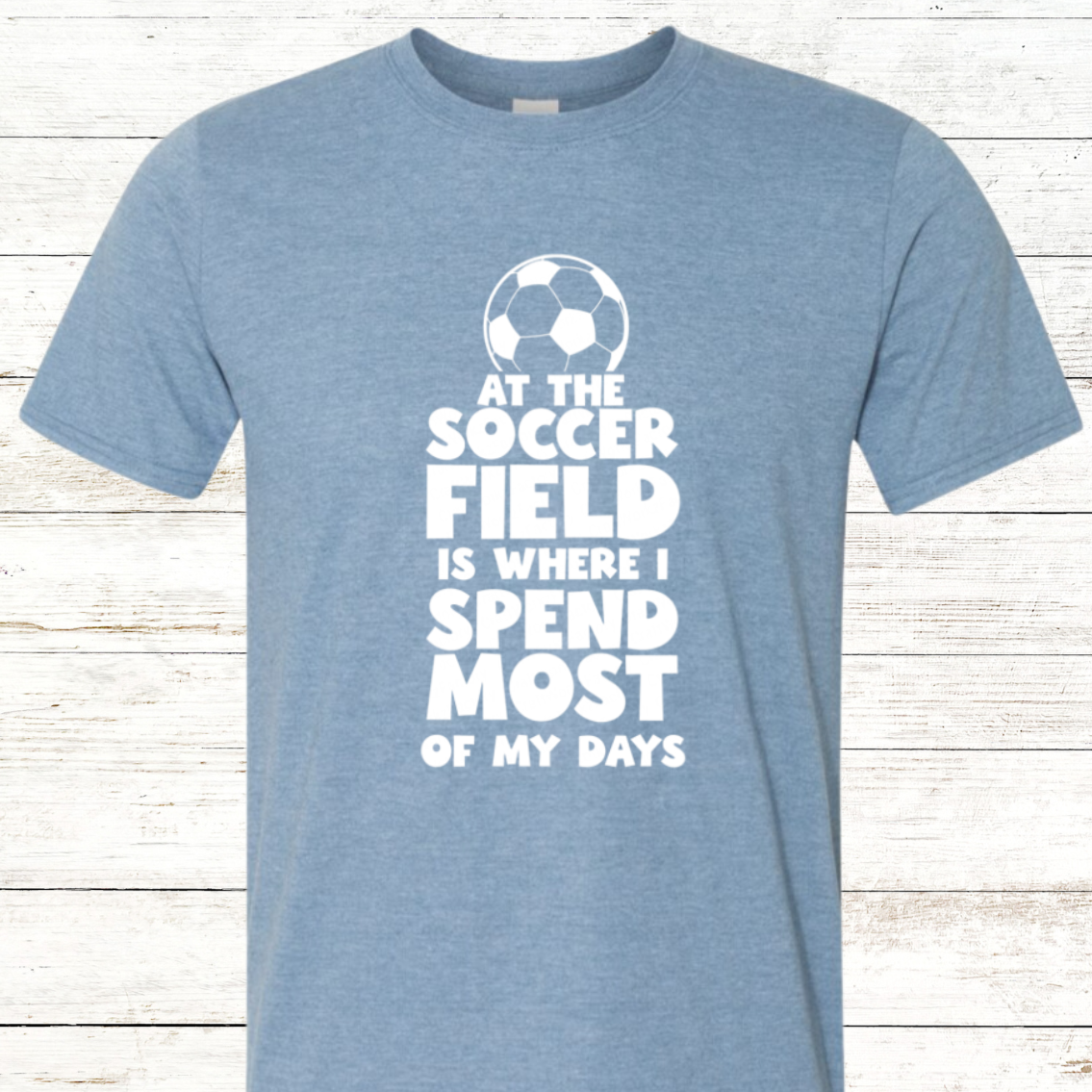 At the soccer field is where i spend most of my days: Soccer shirt with Back Personalization Option