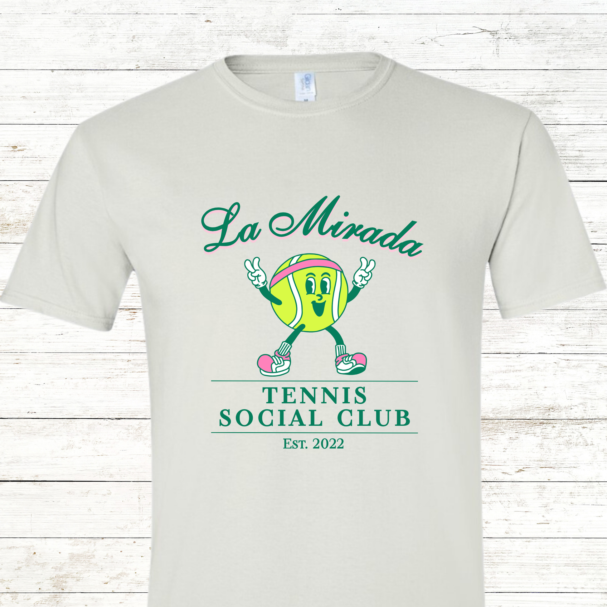 Game, set, style! Show off your tennis pride with this retro-cool Tennis Social Club tee—featuring a happy tennis ball mascot and a classic athletic font that’s as fun as your weekend doubles match.