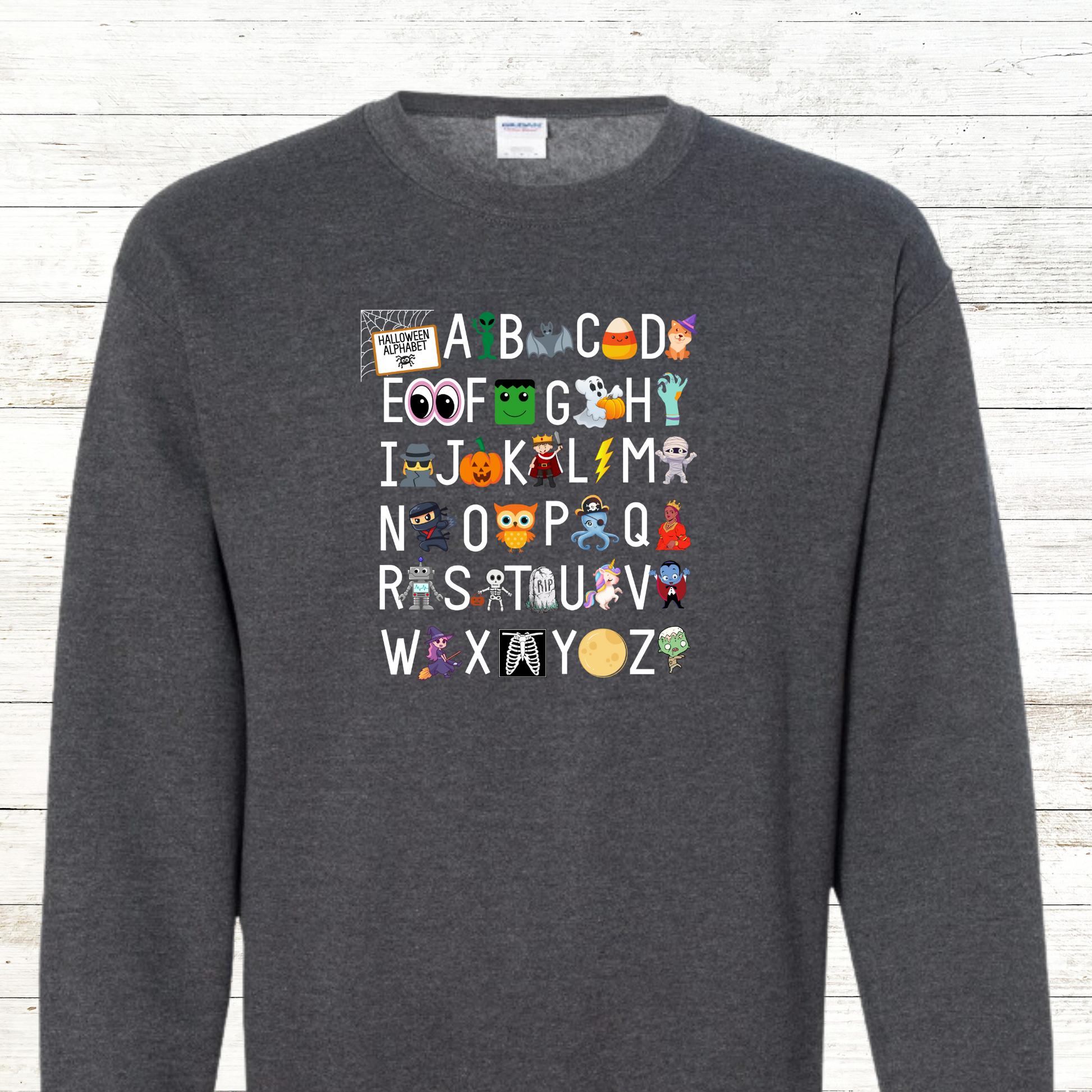 Get into the Halloween spirit with our Spooky Alphabet Halloween T-Shirt! This unique design features the entire alphabet with each letter creatively transformed into a different Halloween-themed character or object. Perfect for Halloween parties, school events, or just adding a touch of spooky fun to your everyday wardrobe.