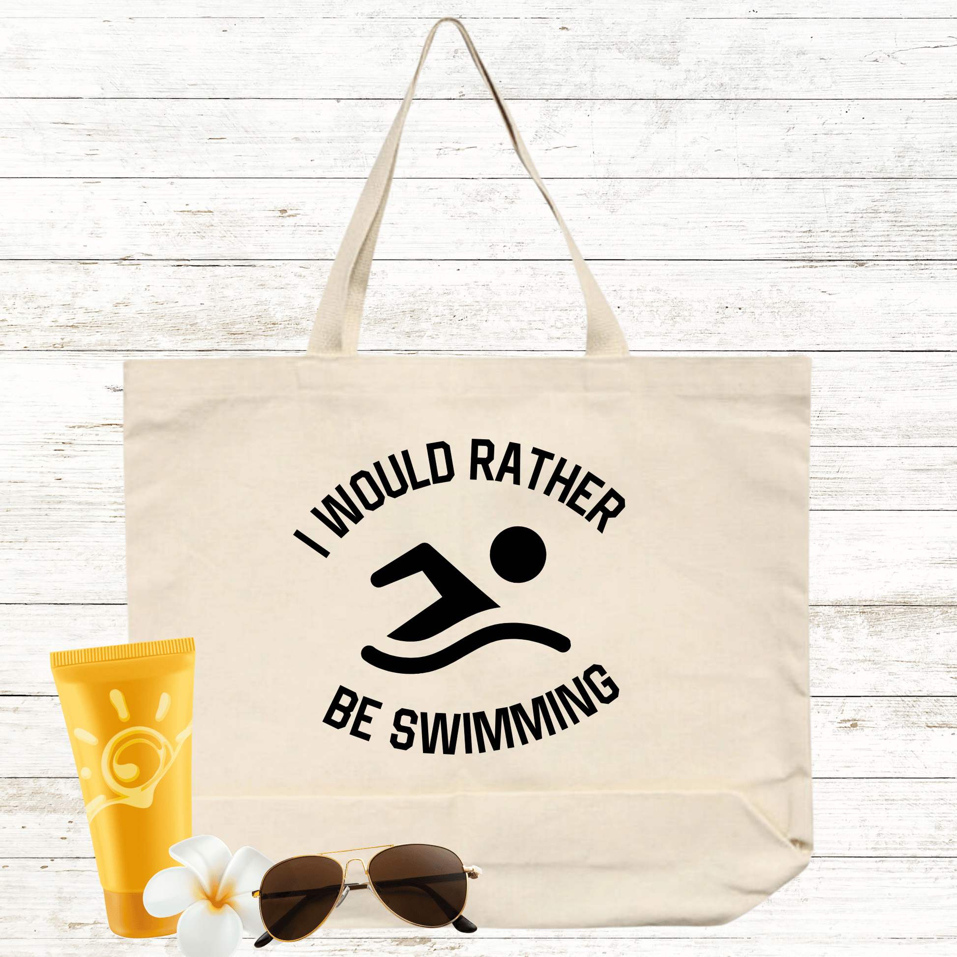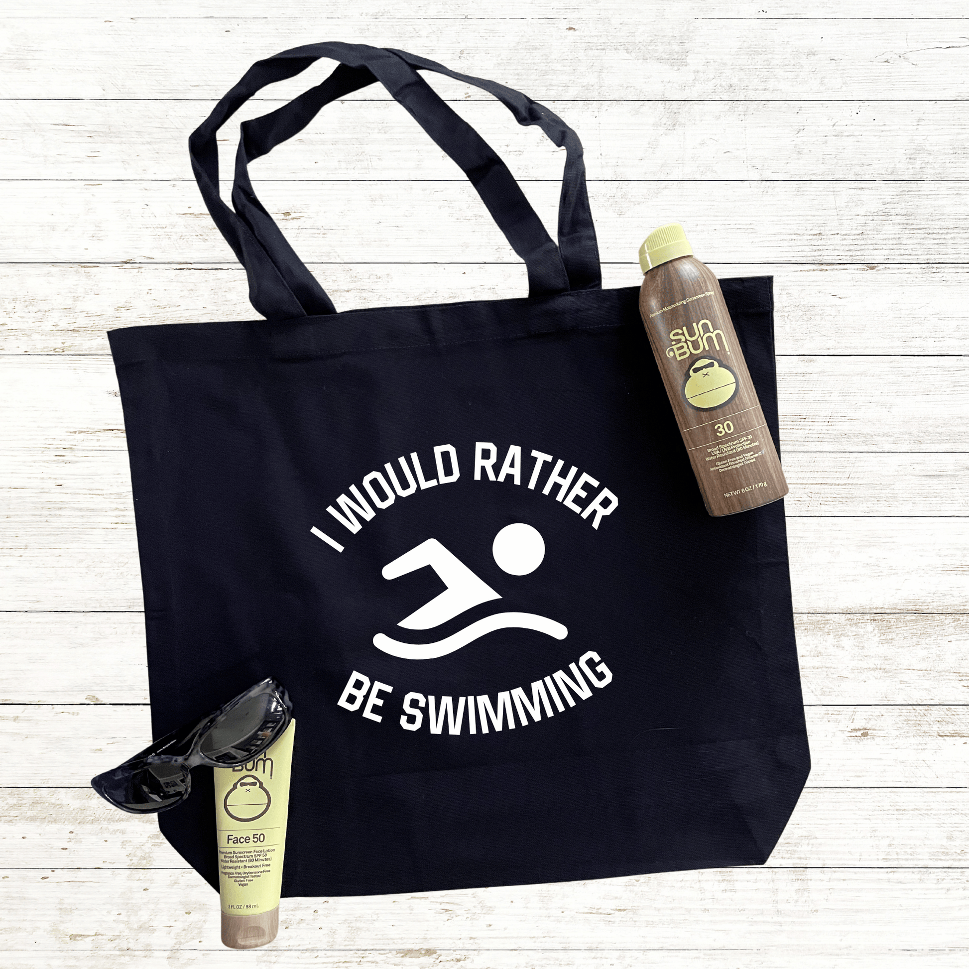 Carry your swimming spirit with you wherever you go with this stylish and functional tote bag. Get yours today and let everyone know you'd rather be swimming!