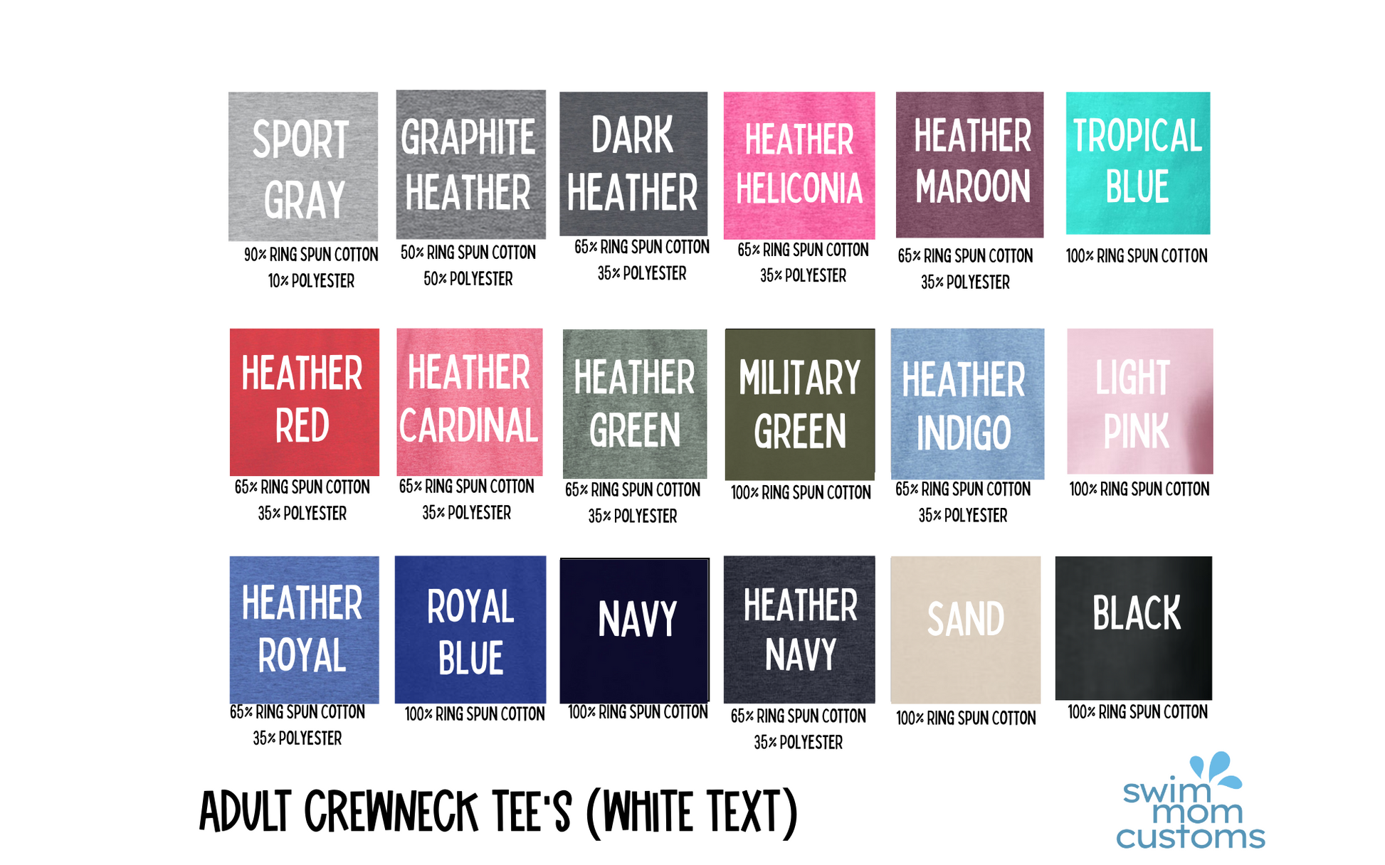 Hello! Thanks for checking out our shop! Swim Mom Customs is a mother-daughter small business and we truly appreciate your support. All shirts are made to order and generally process within 1 day. If you have any questions, please message us prior to ordering.