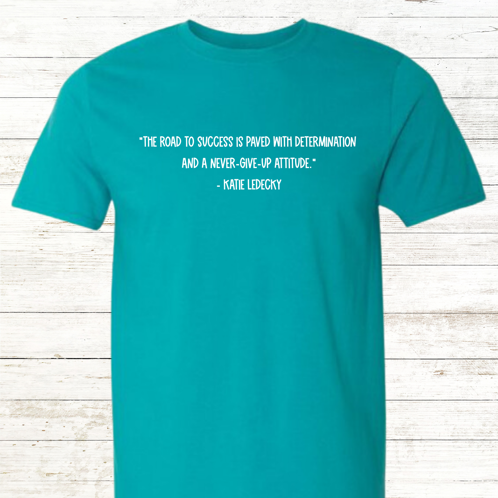 Celebrate your journey to success with the "The Road to Success is Paved with Determination and a Never-Give-Up Attitude" Collection. Choose your favorite shirt, sweatshirt, or hoodie and carry Katie Ledecky's inspiring words with you wherever you go!