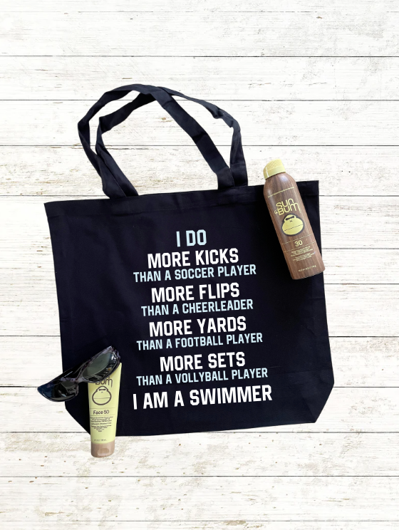 Kicks, Flips, Yards, & Sets - I am a swimmer - Swim Tote Bag