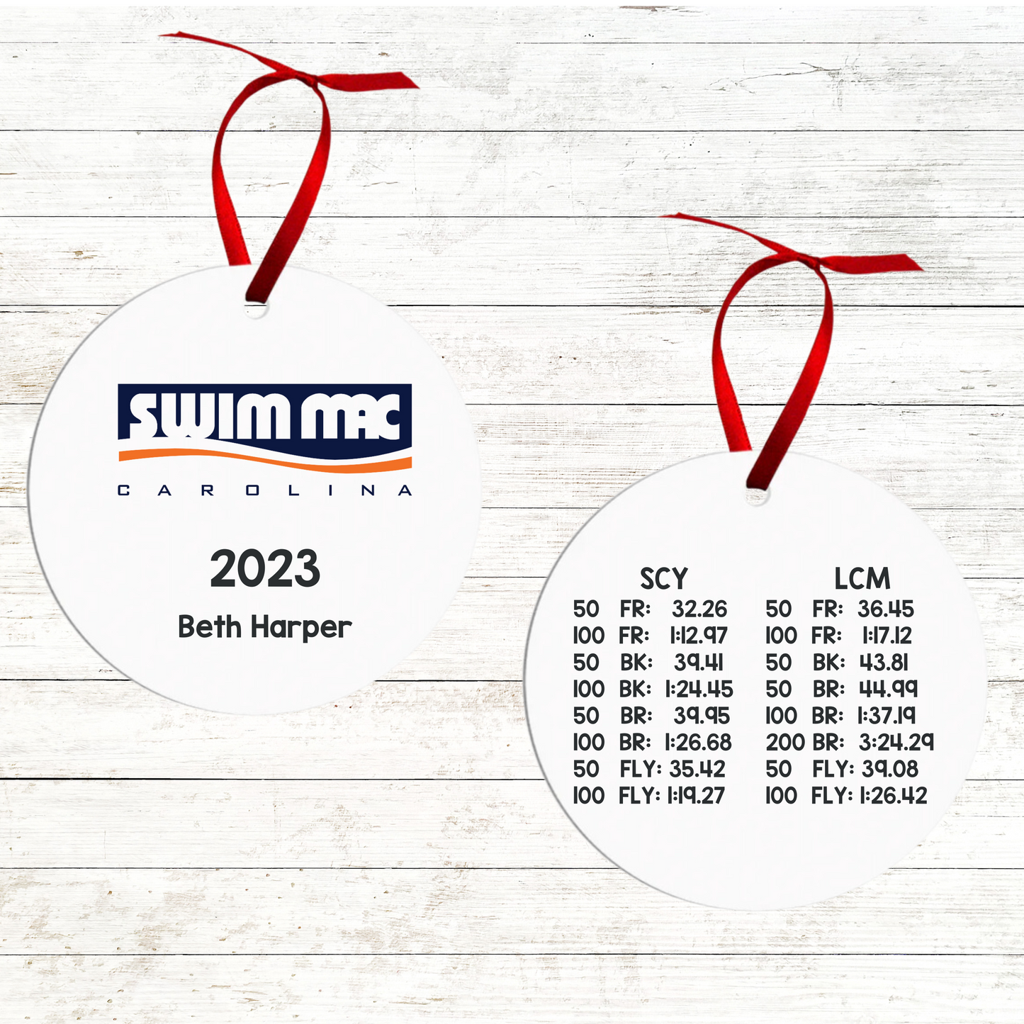 Personalized Swimmer Christmas Ornament - Includes Best Swim Times 2023 - Swim Mac