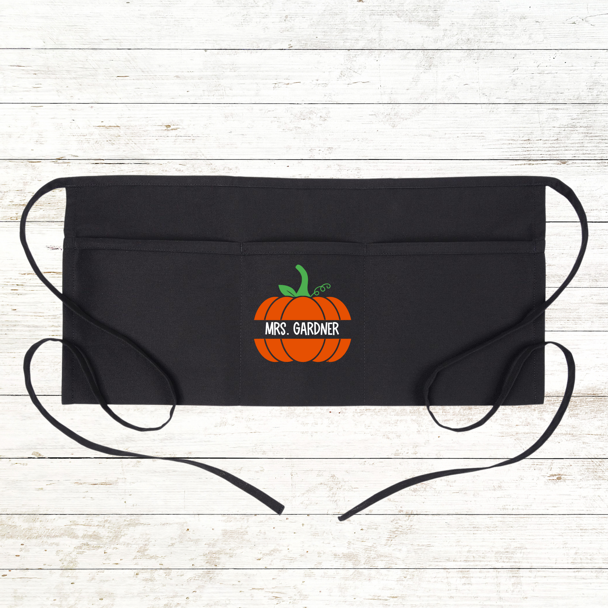 Personalized Teacher Apron with pockets: Fall Pumpkin with Name