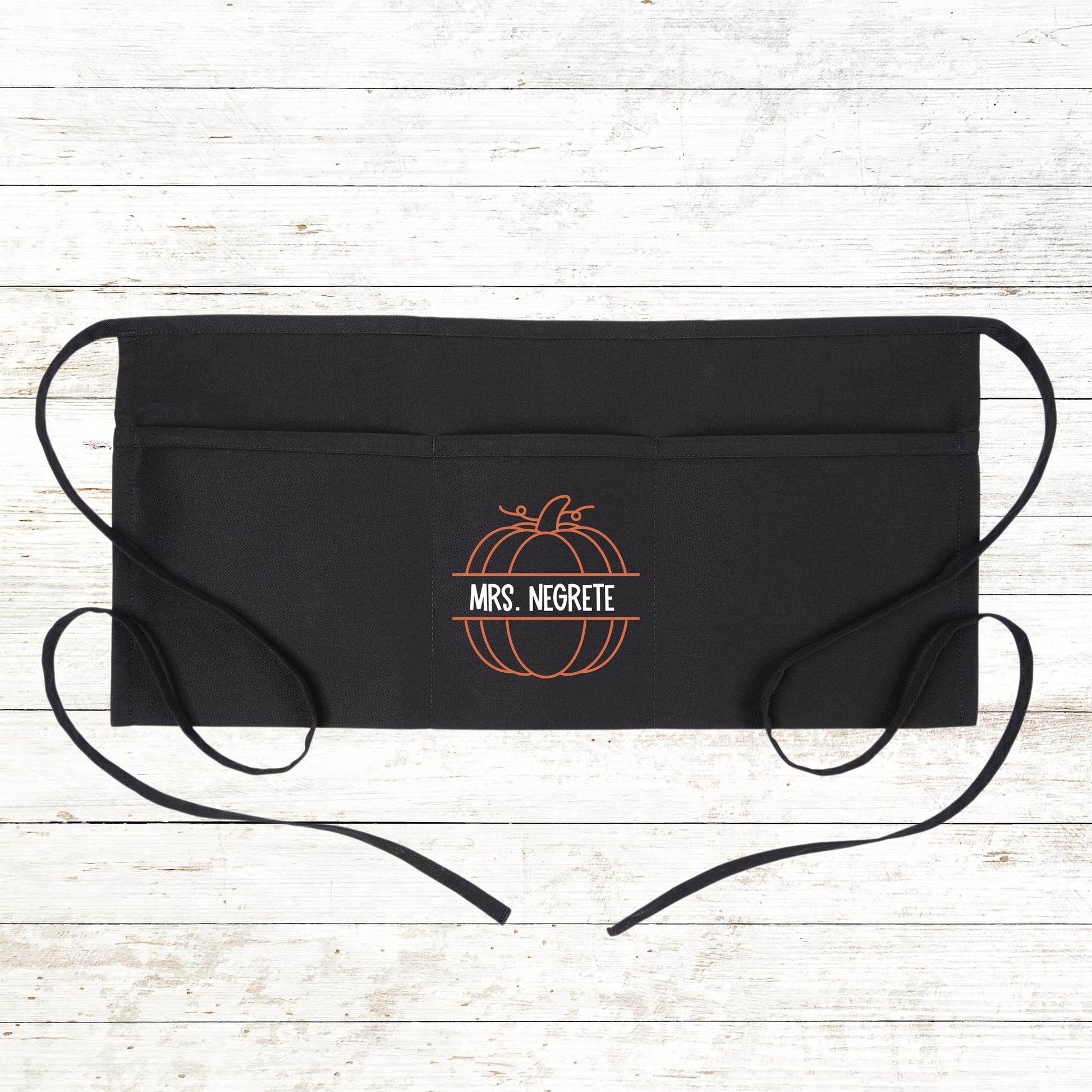 Personalized Teacher Apron with pockets: Pumpkin with Name