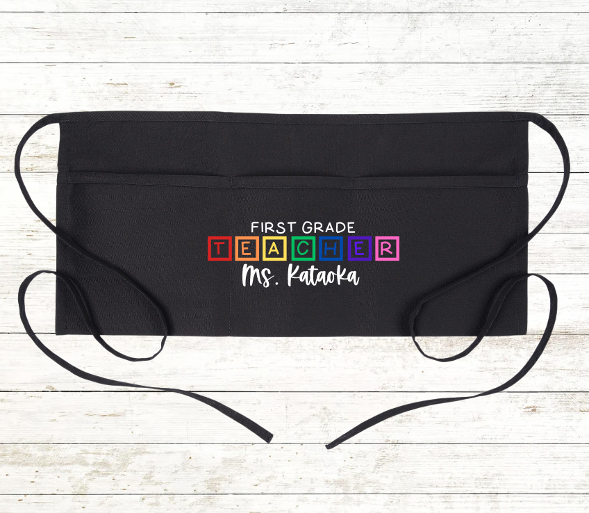 This personalized Color BlocksTeacher apron comes with free shipping. You will receive design proof within 24 hours.
