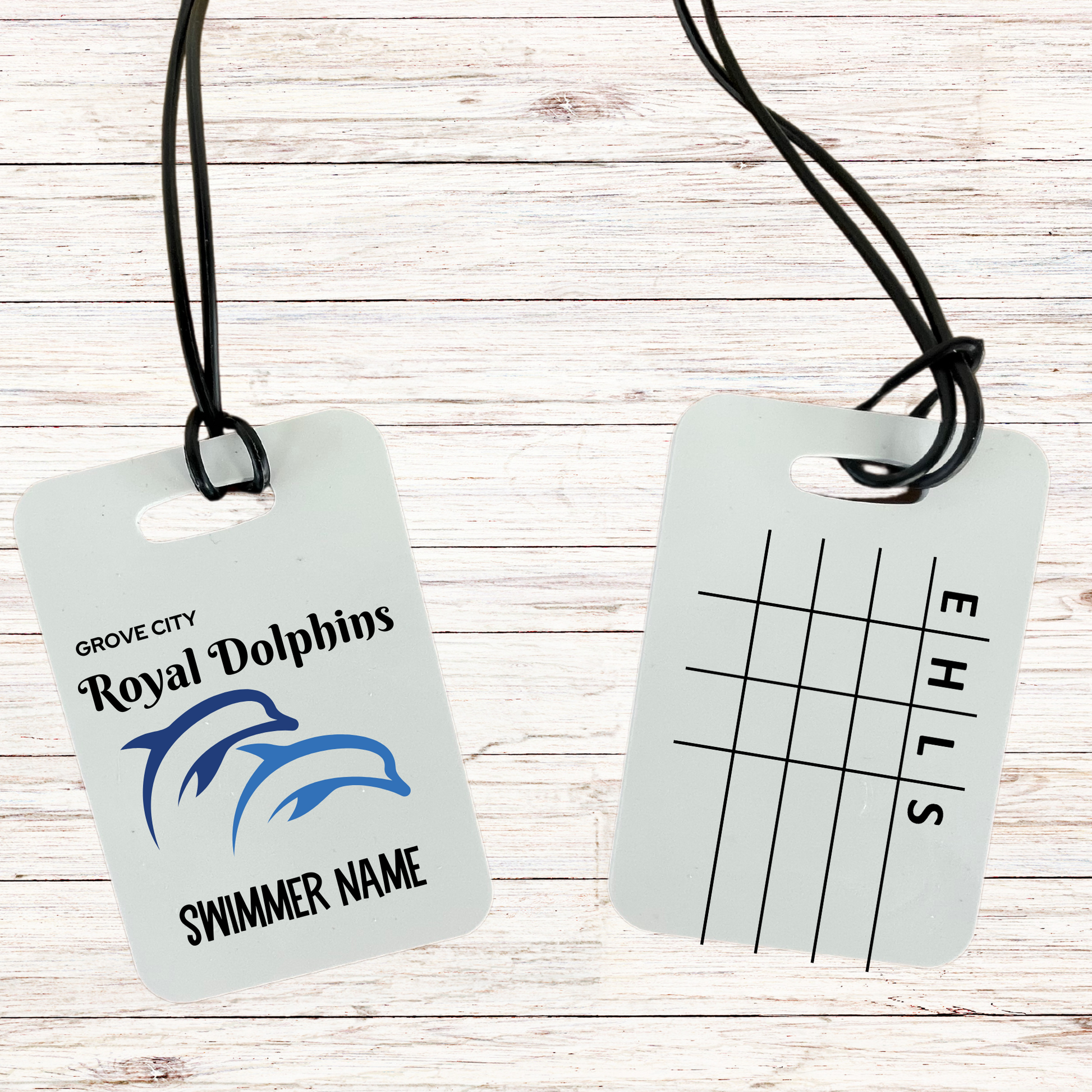 Reusable swim meet heat tag: Grove City Royal Dolphins
