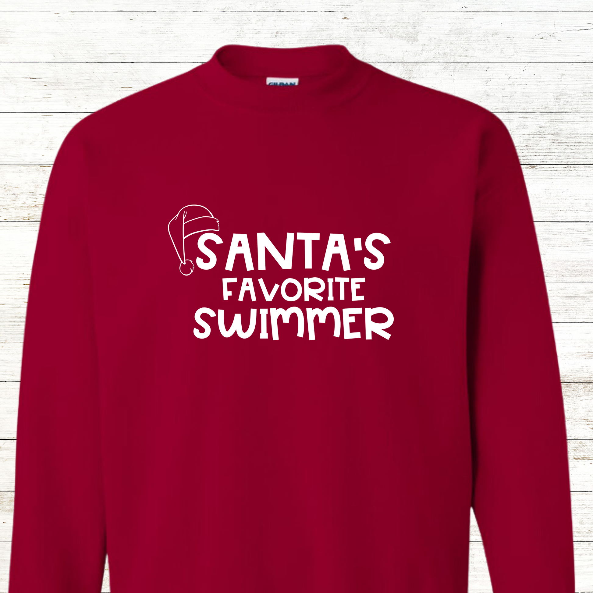 - Festive Design: The "Santa's Favorite Swimmer" graphic is both cheerful and meaningful, making it a standout piece in any swimmer's holiday wardrobe.