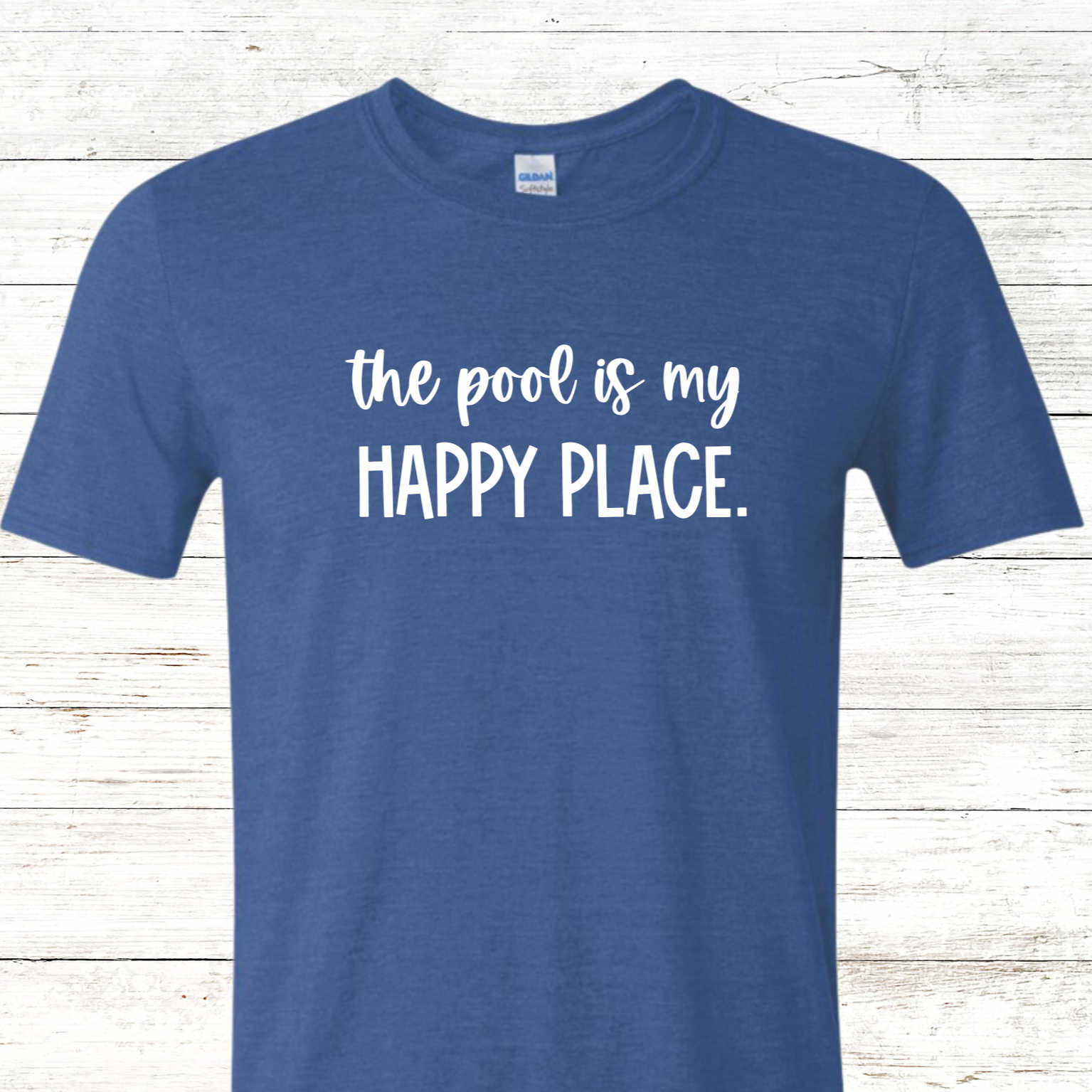 Joyful Design: Featuring the heartfelt phrase "The Pool is My Happy Place," this design is a tribute to the serenity and joy found in swimming.