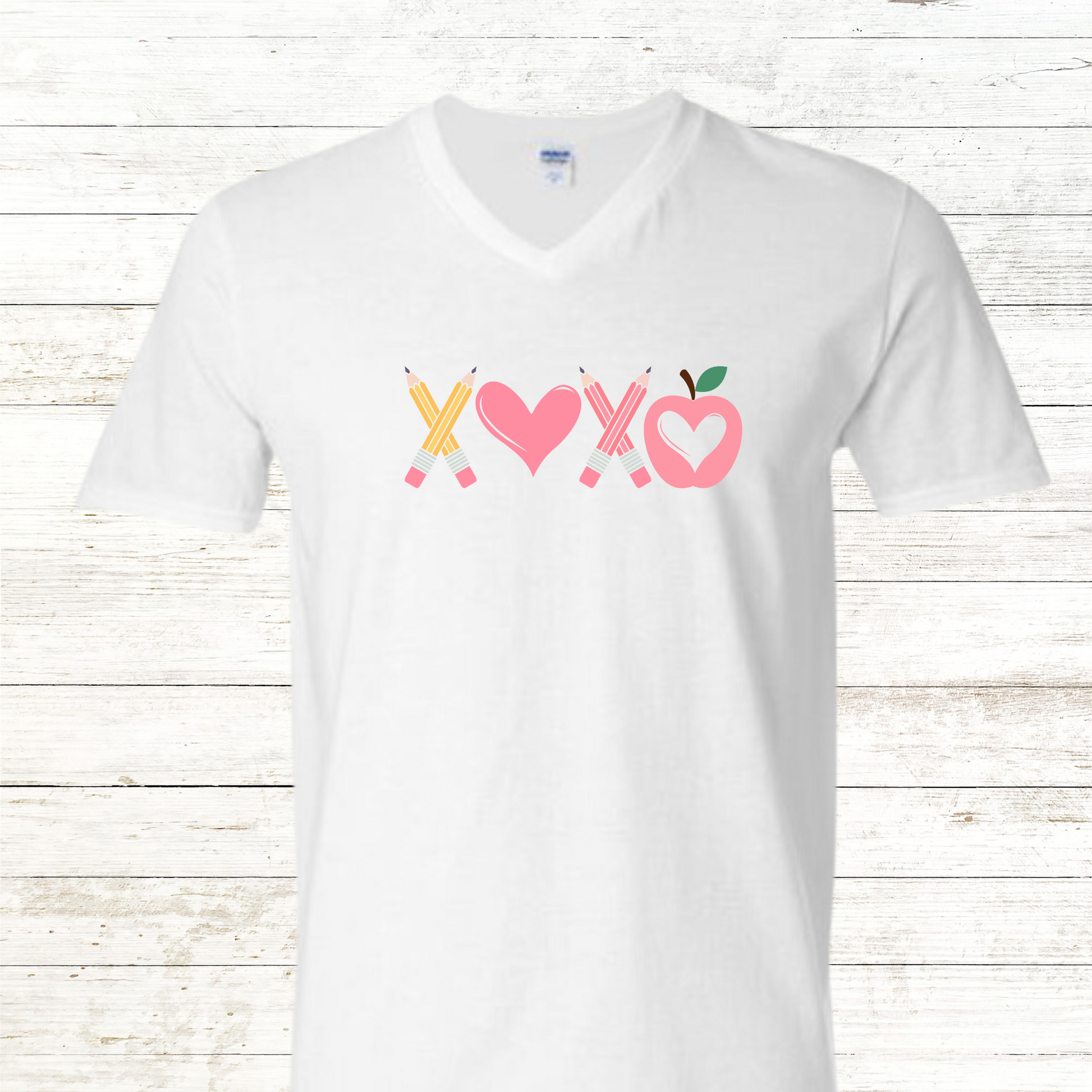 The Teacher Valentine shirt is a delightful and festive garment designed specifically for teachers celebrating Valentine's Day. The shirt features a charming XOXO design, incorporating pencils, a heart, and an apple—symbolic elements associated with education and appreciation.